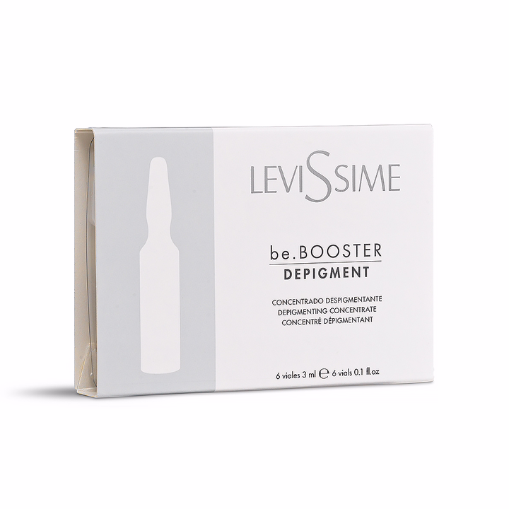 Осветляющий концентрат LeviSsime be.Booster Depigment для комплексной терапии гиперпигментации различного генеза на основе транексамовой и койевой кислот, ниацинамида, азелоилдиглицината калия – эти компоненты позволяют отбеливать даже ярко выраженные пигментные пятна. Также в составе присутствуют антиоксиданты, витамины и запатентованный комплекс RHAMNOSOFT HP, которые оказывают противовоспалительное, успокаивающее и увлажняющее действие на кожу.