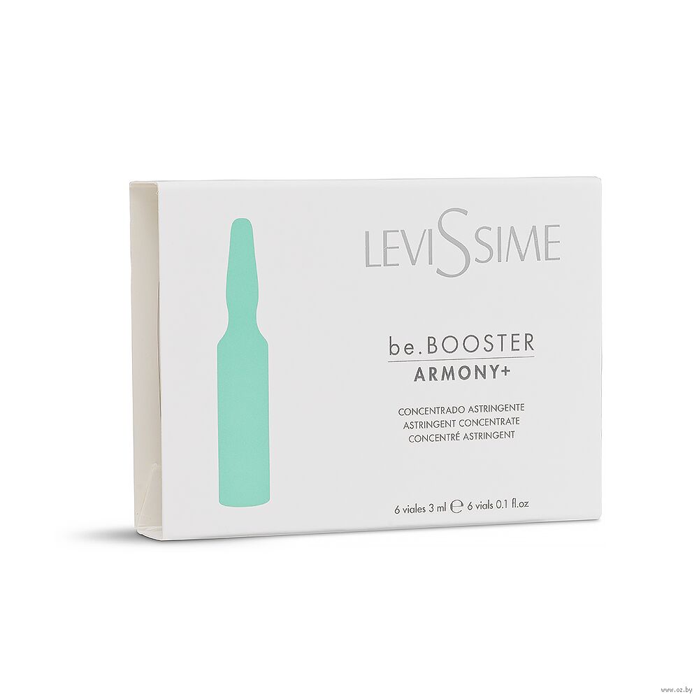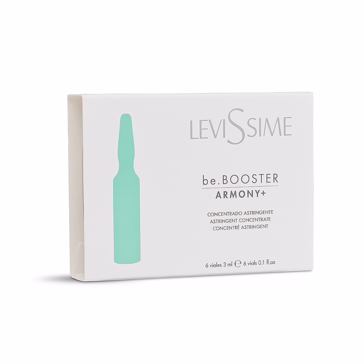 Концентрат для проблемной кожи LeviSsime Be.Booster Armony, благодаря запатентованному комплексу Cytobiol™ Iris A² на основе ириса флорентийского, сульфата цинка и ретинил пальмитата, эффективно борется с причинами акне, матирует кожу, значительно уменьшает площадь и количество расширенных пор, комедонов и акне, успешно корректирует постакне. Азелоилдиглицинат калия дополняет формулу концентрата: оказывает мягкое противовоспалительное действие, поэтому подходит даже для чувствительной кожи, корректирует несовершенства жирной кожи, розацея и акне, уменьшает пигментацию при постакне. Альфа-глюкан олигосахарид поддерживает микробиом кожи, а ниацинамид успокаивает и снимает покраснения.