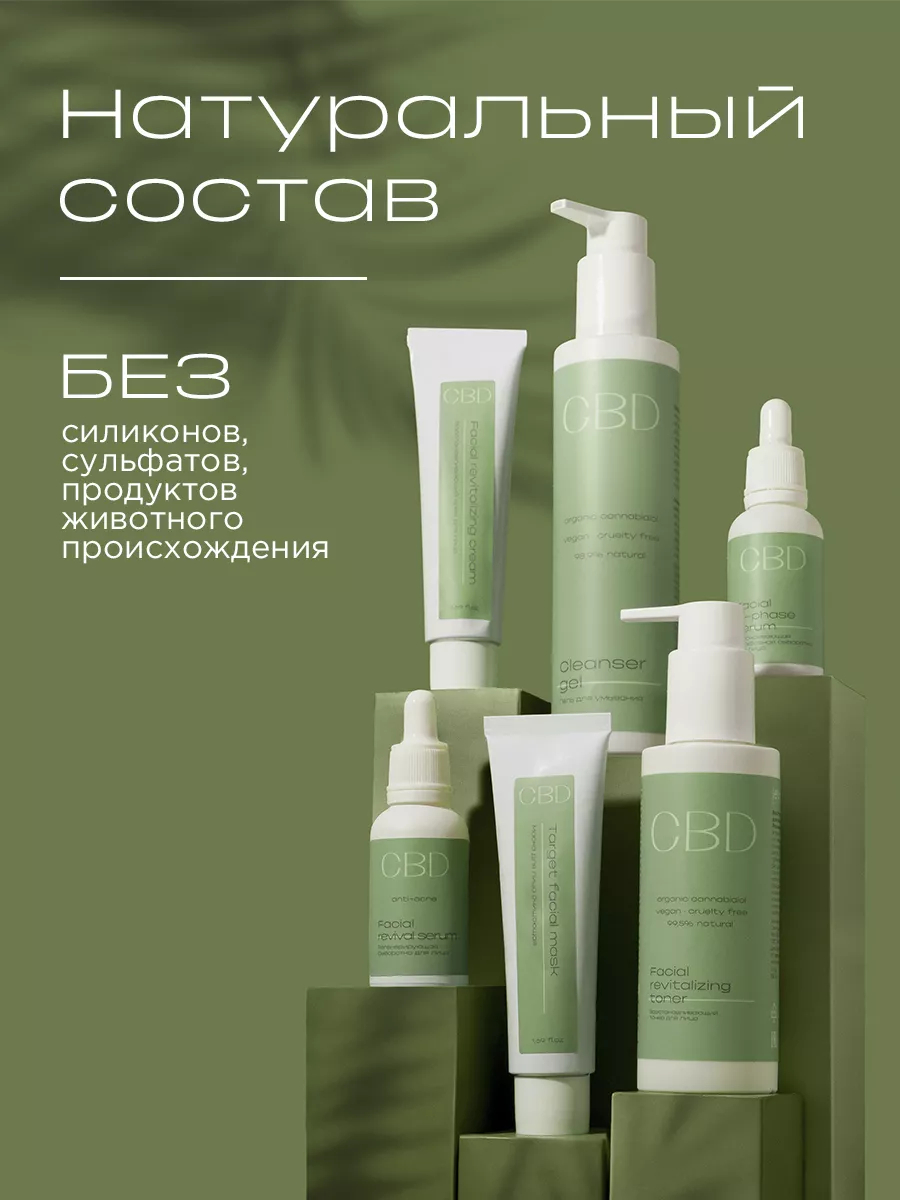 Aqua (Вода), Hamamelis Virginiana Leaf Water (Гидролат гамамелиса), Glycerin (Глицерин), Niacinamide (Витамин В3), Pentylene Glycol (Растительный пентиленгликоль), Inulin (Инулин), Cannabidiol (Изолят каннабидиола), Sodium Hyaluronate (Гиалуронат), Carrageenan (Каррагинан), Benzyl Alcohol (Бензиловый спирт), Glycereth-2 Cocoate (Растительный солюбилизатор), Xanthan Gum (Ксантановая камедь), Lactic Acid (Молочная кислота), Benzoic Acid (Бензойная кислота), Camellia Sinensis Leaf Extract (Экстракт зеленого чая), Potassium Sorbate (Калия сорбат), Sodium Benzoate (Натрия бензоат).