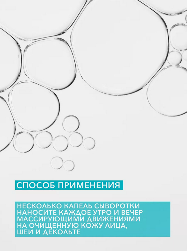 Несколько капель сыворотки наносите каждое утро и вечер массирующими движениями на очищенную кожу лица, шеи и декольте.Состав