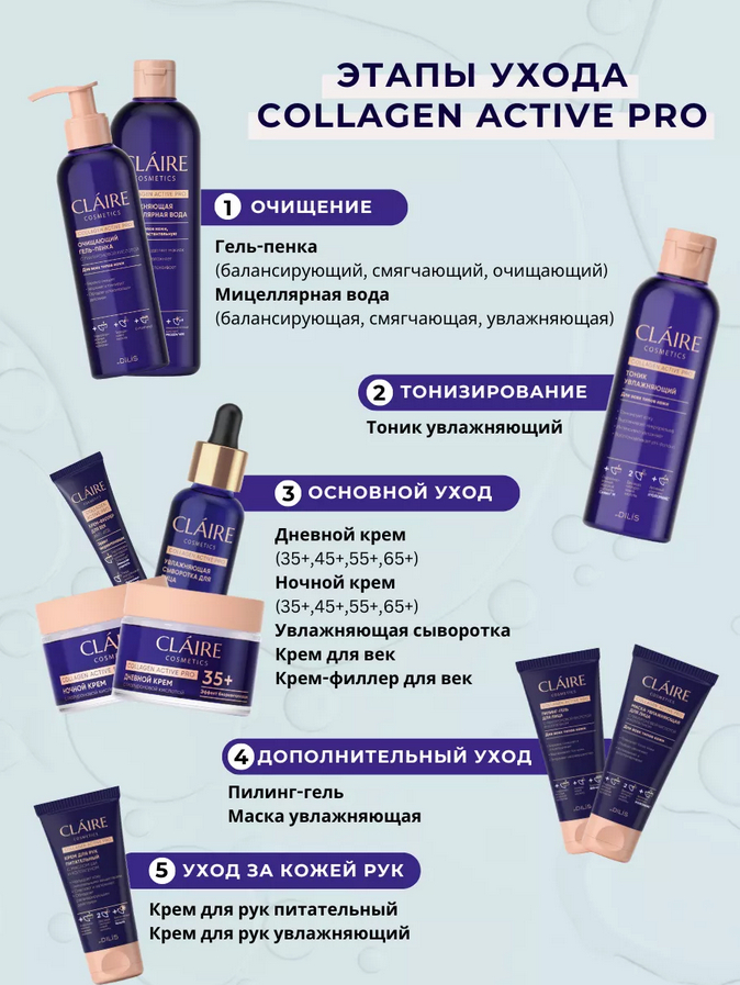 Смочите тоником ватный диск и протрите кожу лица и шеи, предварительно очищенную гель-пенкой для умывания COLLAGEN ACTIVE PRO.Состав