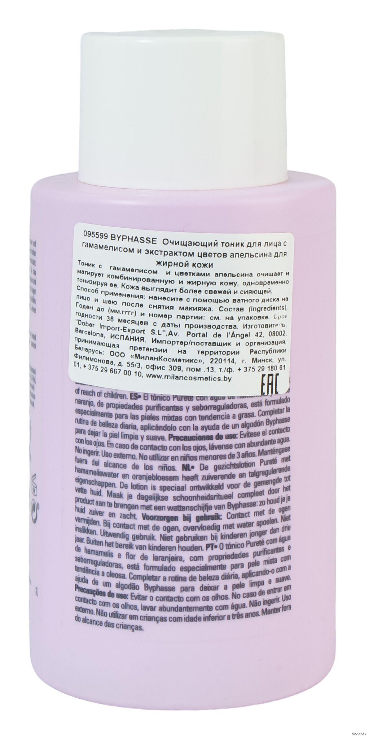 Нанесите ватным диском Byphasse на лицо, контур глаз и шею после снятия макияжа. Он завершает процедуру ухода и делает кожу мягкой и чистой.Состав