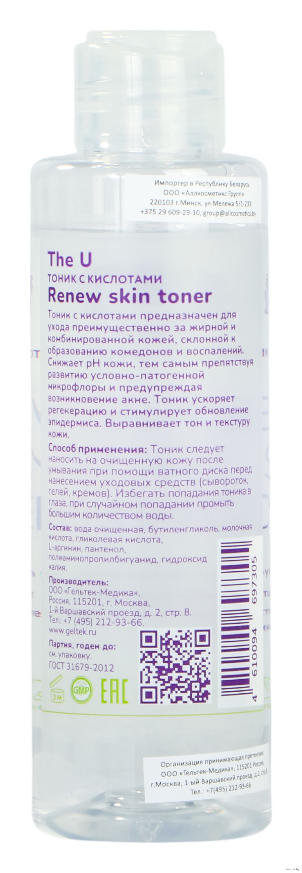 Тоник с кислотами для ухода за жирной и комбинированной кожей, склонной к образованию комедонов и воспалений. Подходит для кожи с гиперкератозом для бережного отшелушивания ороговевших клеток. Низкая кислотность тоника (рН 3,5) снижает рН кожи, препятствуя развитию на поверхности условно-патогенной микрофлоры и предупреждая возникновение акне.