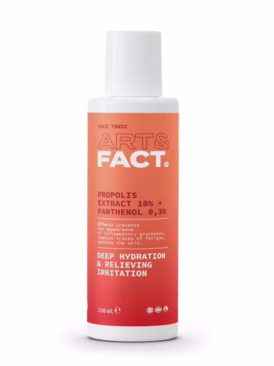 Успокаивающий и увлажняющий тоник для лица с экстрактом прополиса 10% и пантенолом 0,3%.