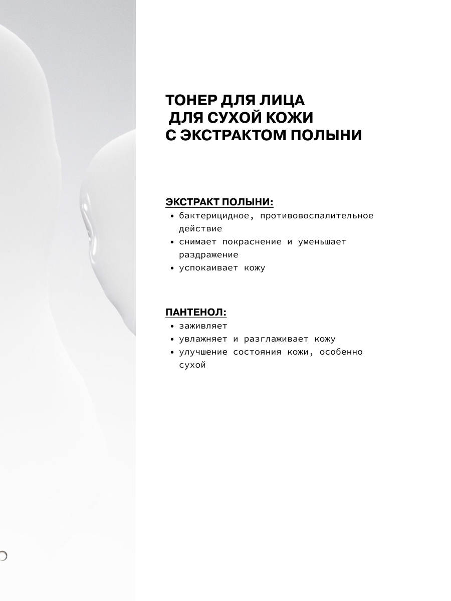 Тонер для лица для сухой кожи c экстрактом полыни и пантенолом 4%.