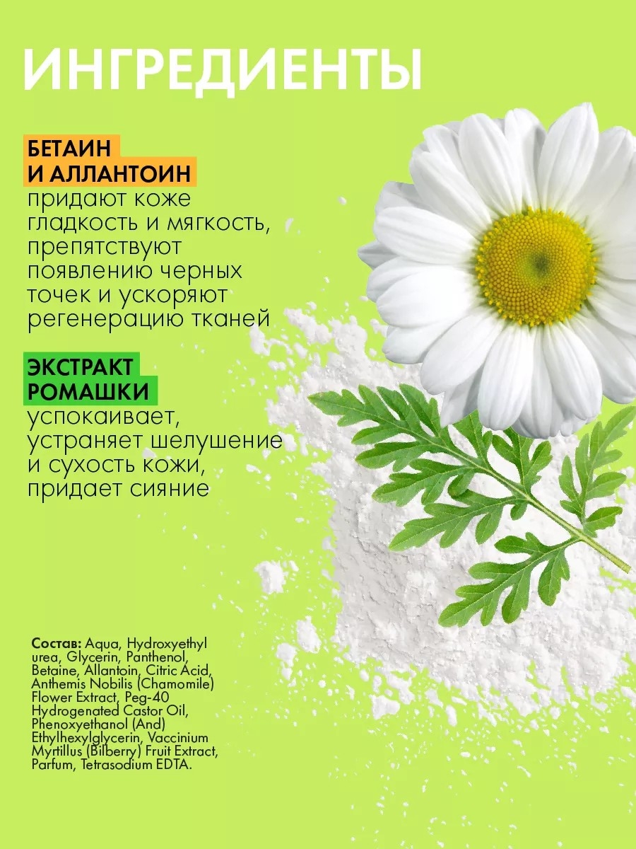 | Активные ингредиенты | Экстракт ромашки |