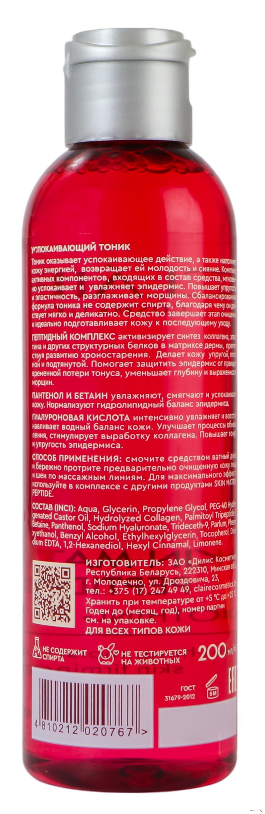Смочите средством ватный диск и бережно протрите предварительно очищенную кожу лица и шеи по массажным линиям. Для максимального эффекта используйте в комплексе с другими продуктами SKIN MATRIX PEPTIDE.Состав