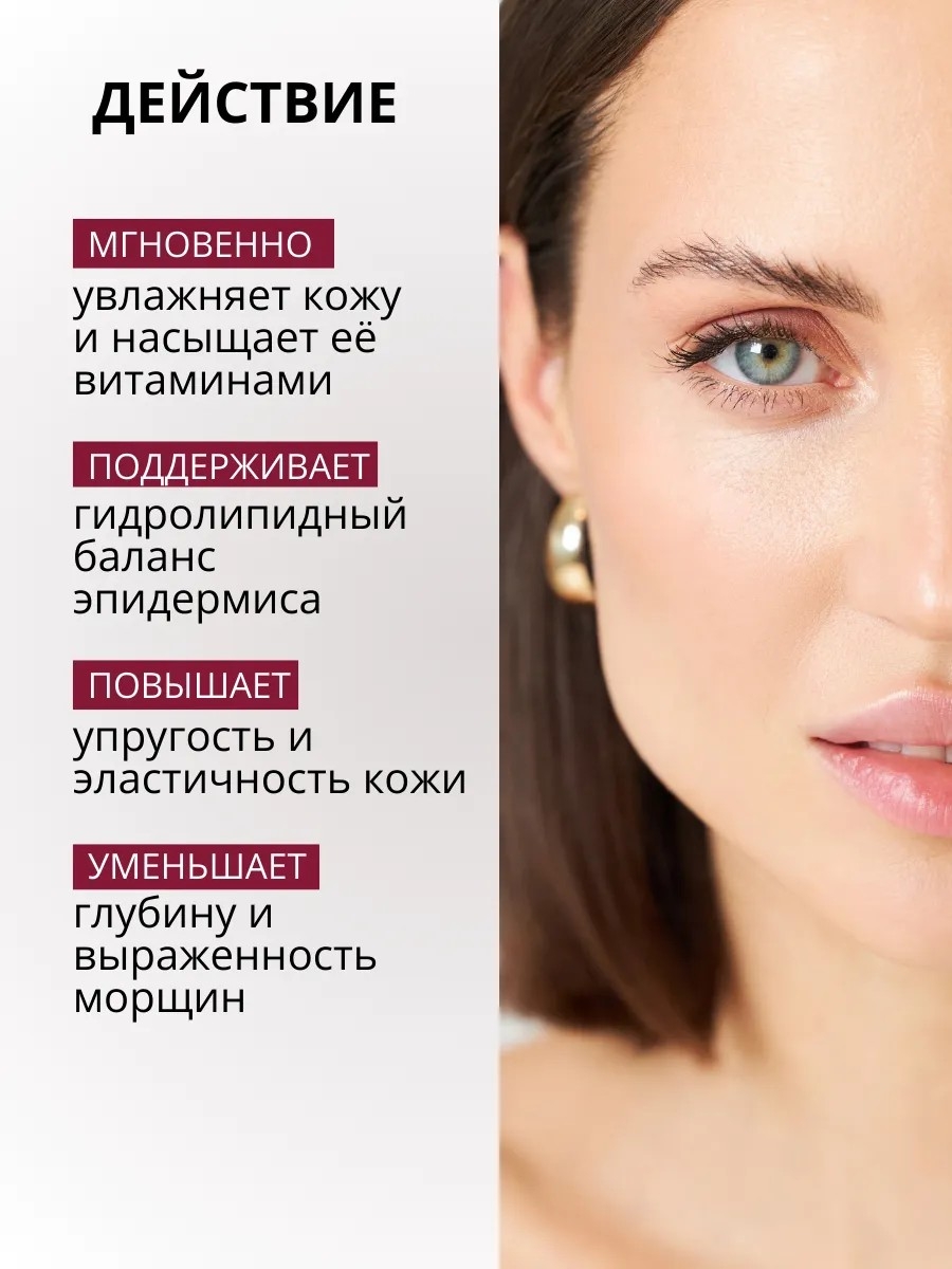 Гиалуроновая кислота интенсивно увлажняет и восстанавливает водный баланс кожи. Улучшает процессы обновления, стимулирует выработку коллагена. Повышает тонус и упругость эпидермиса.
