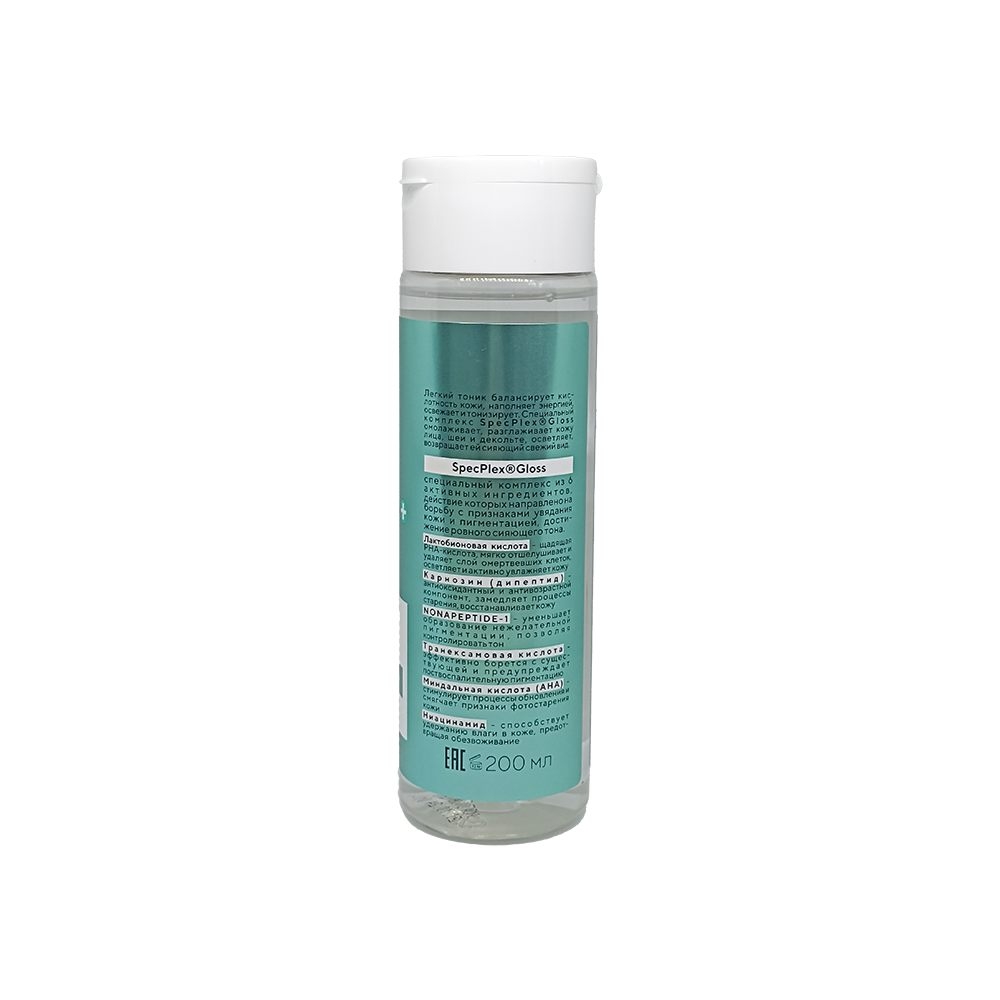 Легкий тоник балансирует кислотность кожи, наполняет энергией, освежает и тонизирует. Специальный комплекс SpecPlex Gloss омолаживает, разглаживает кожу лица, шеи и декольте, осветляет, возвращает ей сияющий свежий вид.