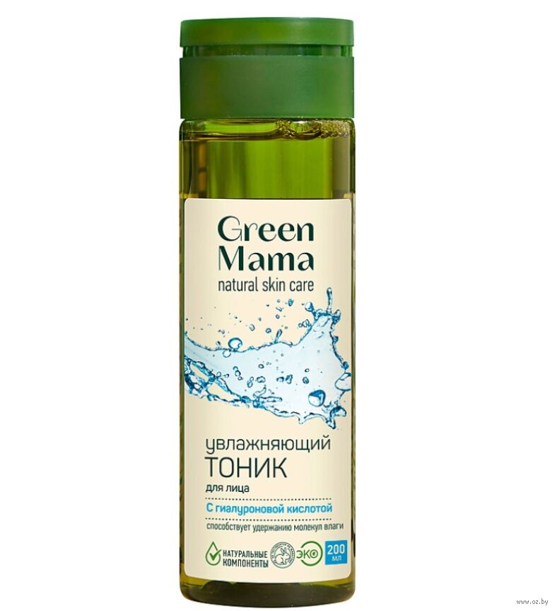 Увлажняющий тоник Green Mama с гиалуроновой кислотой, экстрактом алоэ вера и пантенолом будет способствовать притягиванию и удержанию молекул влаги, что поможет вашей коже предотвратить появление сухости.