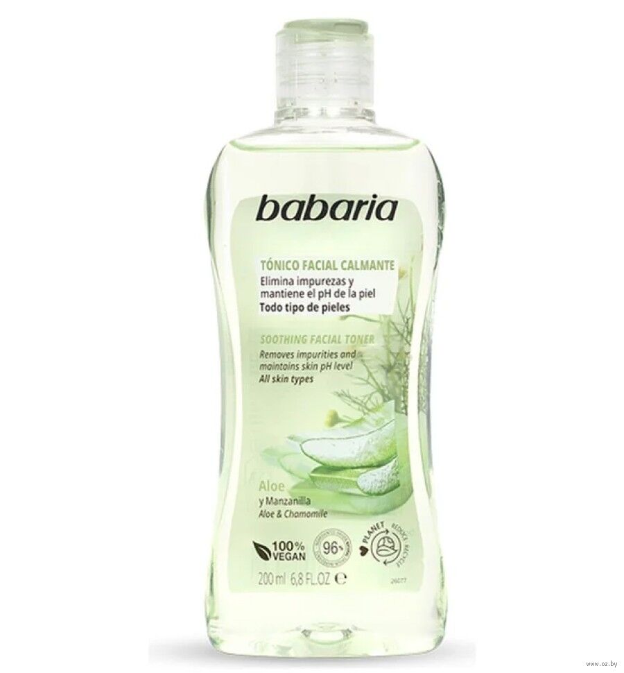 Успокаивающий тоник для лица Babaria. Средство эффективно устраняет загрязнения, тонизирует кожу, сохраняет естественный уровень pH. В состав входят ухаживающие экстракты. Алоэ вера и ромашка интенсивно увлажняют, снижают воспаления, обладают антисептическим действием, успокаивают и смягчают кожу.