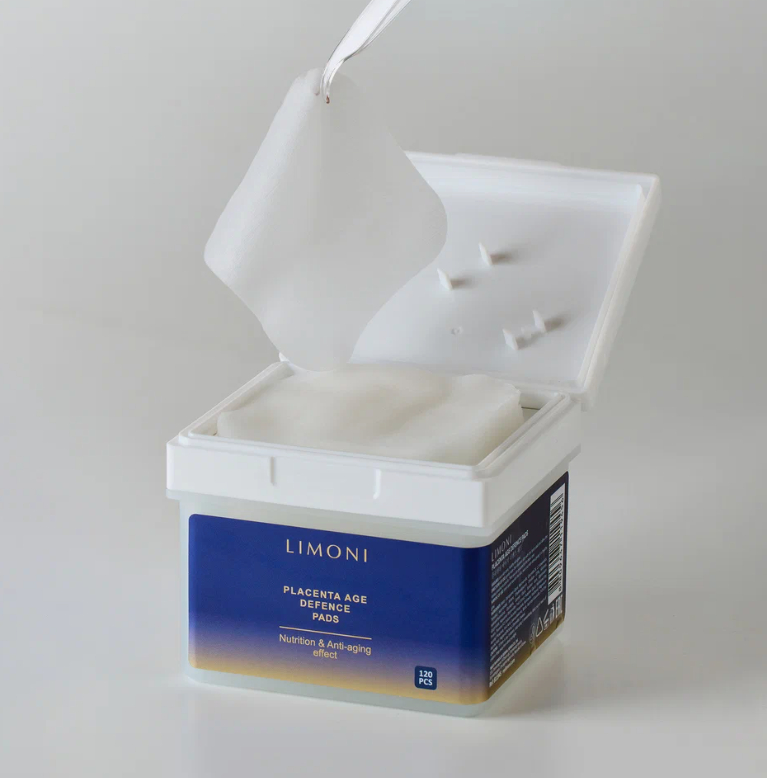 Для ежедневного питательного ухода за лицом косметический бренд Limoni рекомендует выбрать тонер-пэды Placenta Age Defence Pads, пропитанные концентратом с экстрактом плаценты и другими полезными веществами.