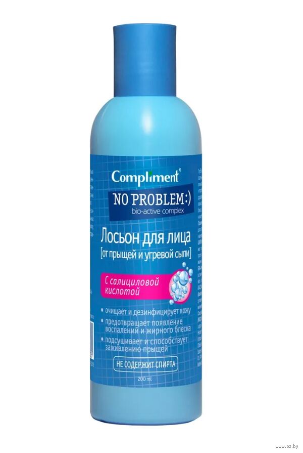 Лосьон от прыщей и угревой сыпи Compliment "No Problem" – это эффективное средство для борьбы с проблемами кожи, обогащенное салициловой кислотой.