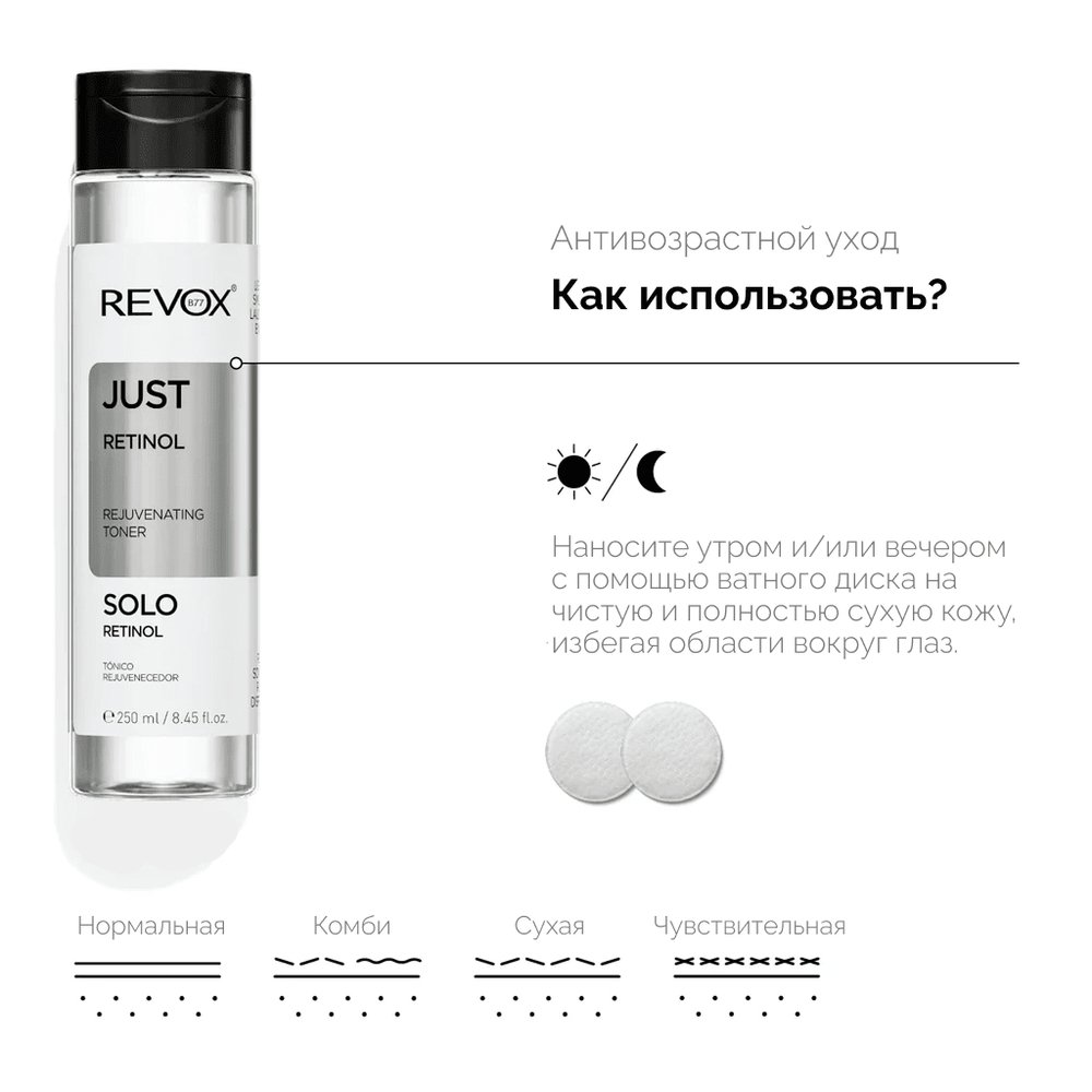 Наносите утром и/или вечером с помощью ватного диска на чистую и полностью сухую кожу, избегая области вокруг глаз. Смывать не нужно. Рекомендуется использовать солнцезащитное средство, особенно если вы наносите его утром.Состав