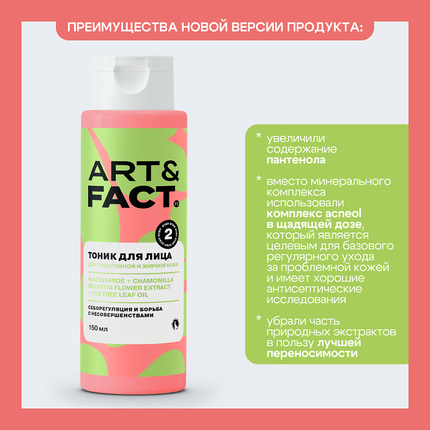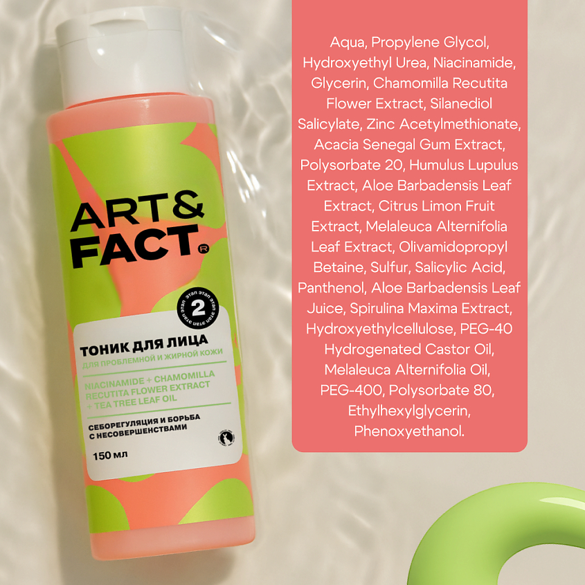 Сок алоэ, экстракты ромашки, хмеля и чайного дерева смягчают кожу, не забивают поры и оказывают антиоксидантный эффект. Пантенол и экстракт спирулины восстанавливают гидробаланс, а также успокаивают кожу. Таким образом, тоник подойдет для базового ухода за жирной, проблемной и комбинированной кожей в подростковом периоде.