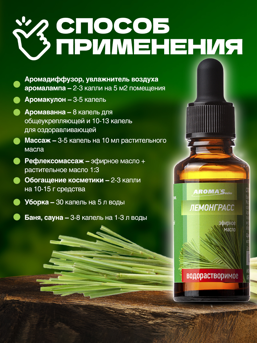 Аромакулон: 3-5 капель масла или смеси масел налейте в аромакулон и носите на шее в течение дня.