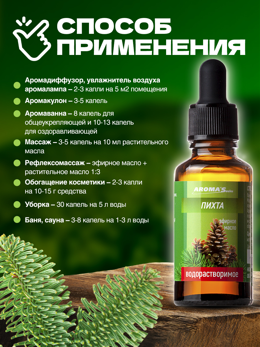 В аромадиффузор дозировка 2-3 капли масла на 5 м2 площади помещения.