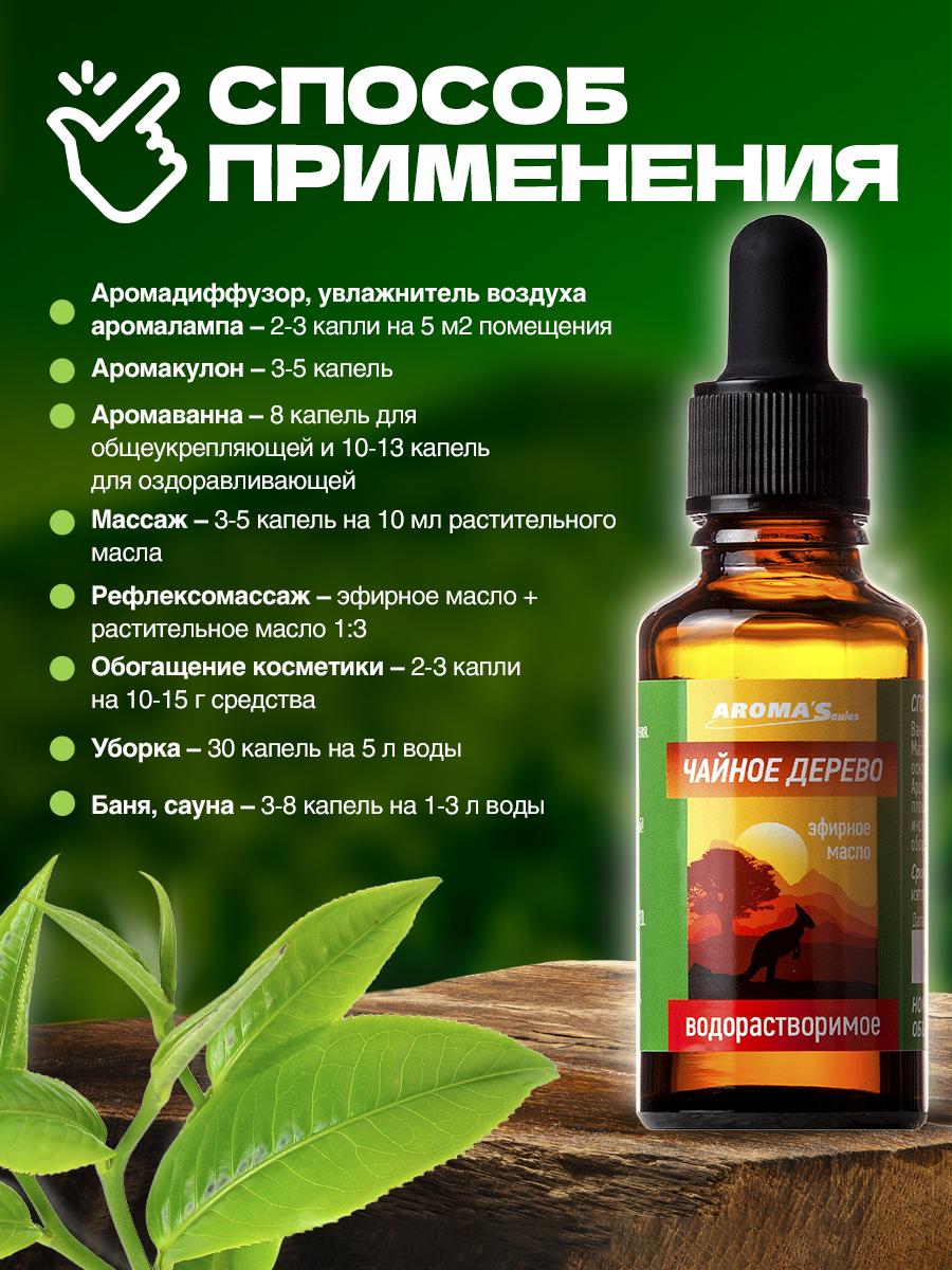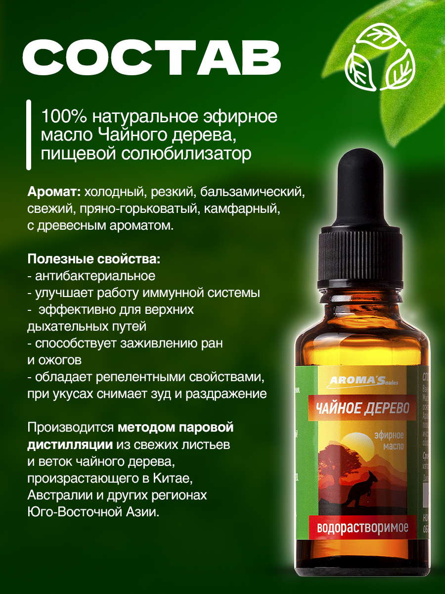 Натуральное эфирное масло Чайное дерево, полисорбат 20.