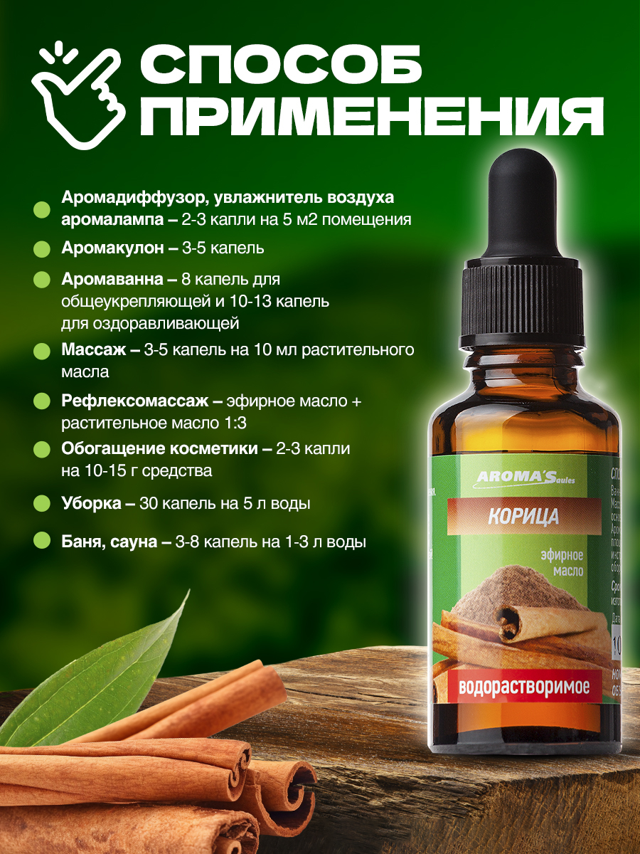 В аромадиффузор дозировка 2-3 капли масла на 5 м2 площади помещения.