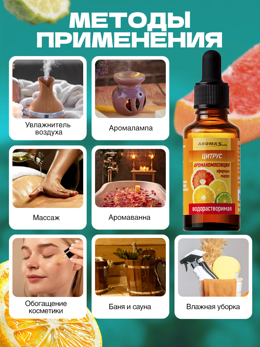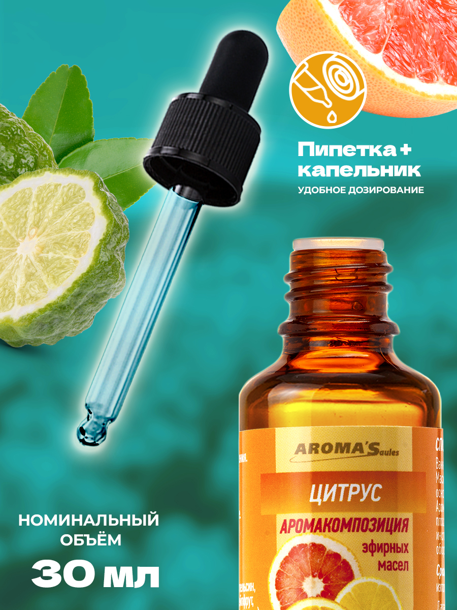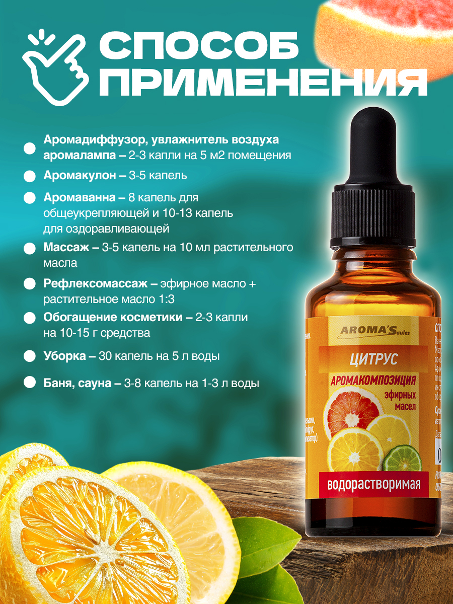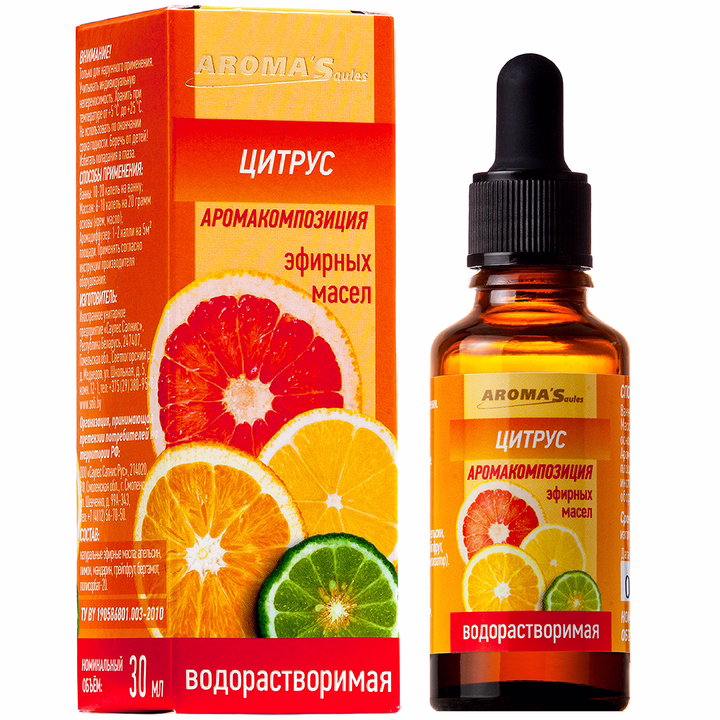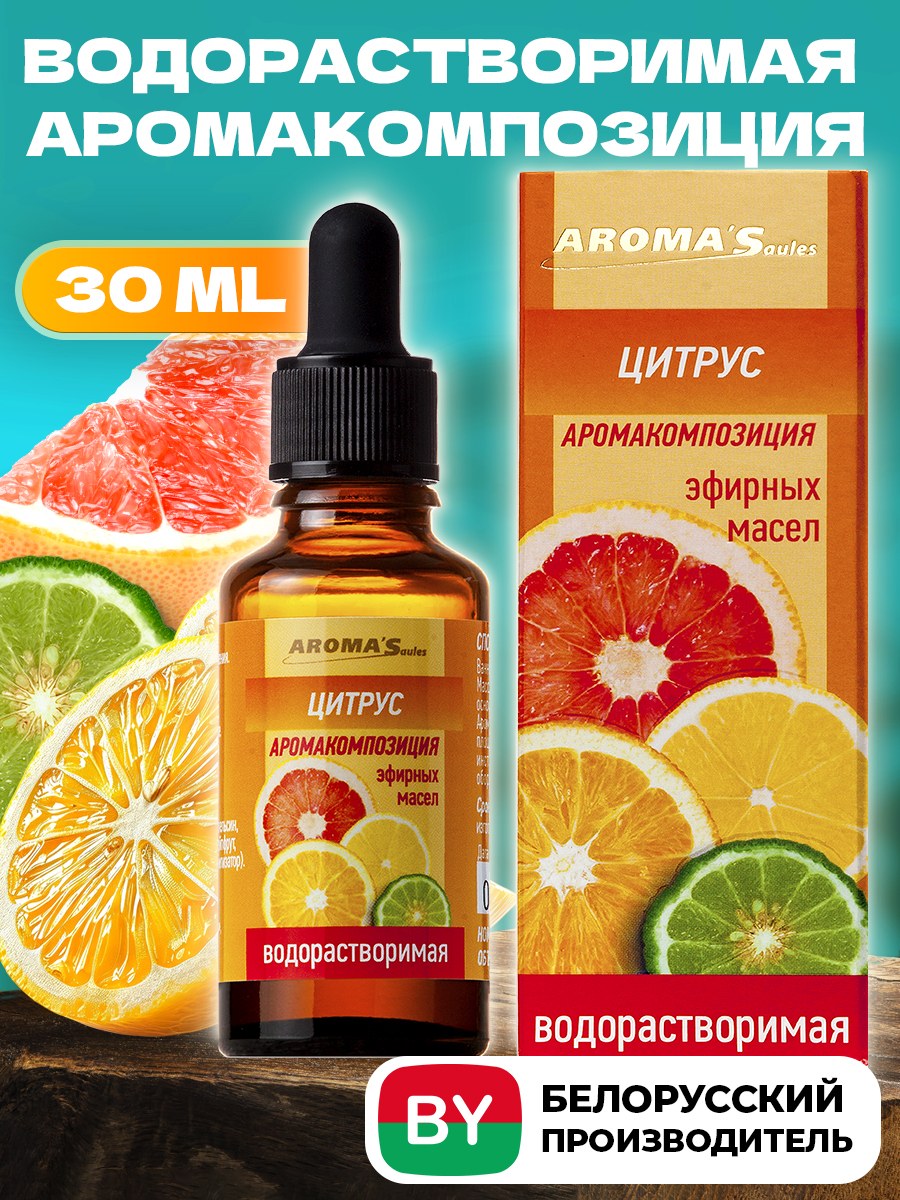 Натуральные эфирные масла Апельсин, Лимон, Мандарин, Грейпфрут, Бергамот, полисорбат 20.