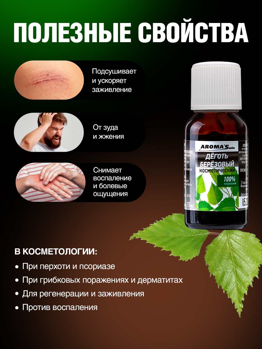 Экстракция: продукт сухой перегонки бересты или смолянистой наружной части коры берёзы.