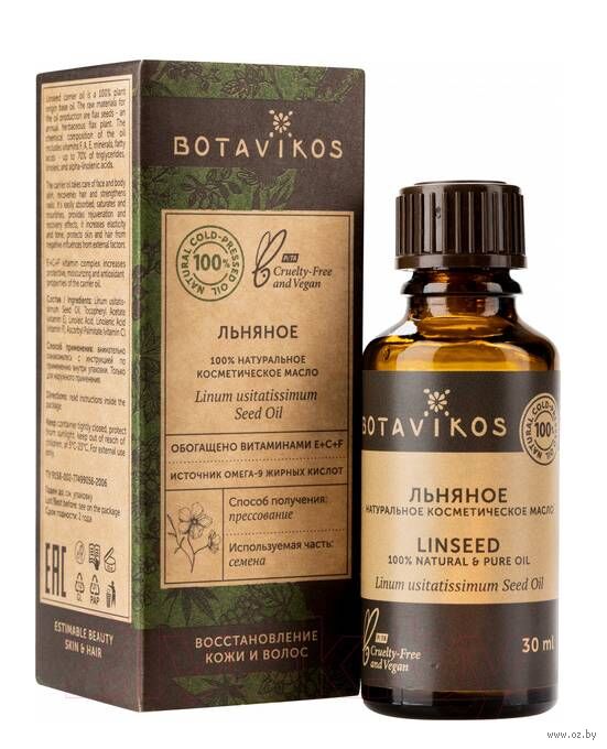 100% натуральное рафинированное жирное масло Linum usitatissimum seed oil (Лен из семян) полученное методом прессования.