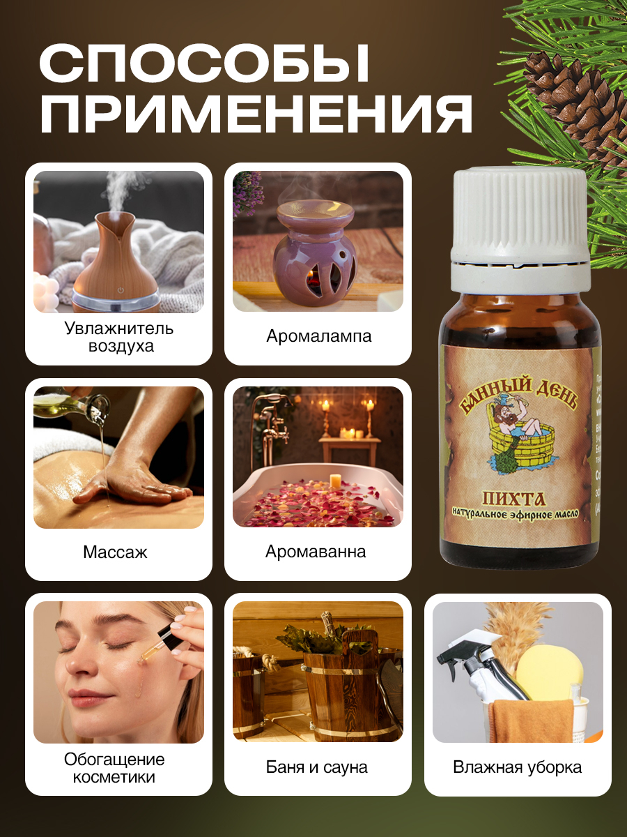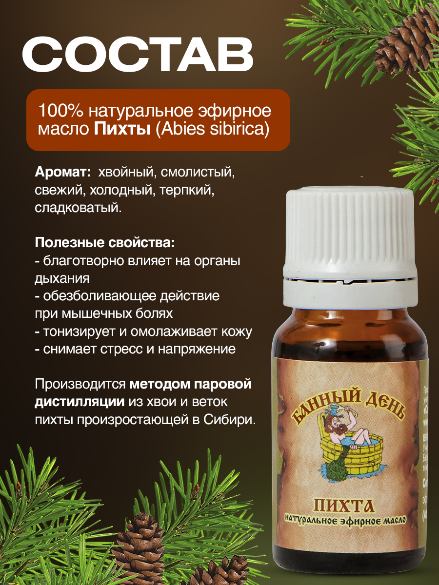 Эфирное масло пихты повышает работоспособность, устраняет усталость и перенапряжение, оказывает стимулирующее действие на иммунитет.