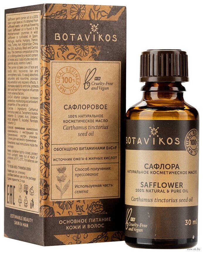 100% натуральное масло, получаемое из семян сафлора, – ценный продукт, используемый для ухода кожей и волосами. Формула Carthamus Tinctorius Oil из коллекции российского бренда Botavikos выделяется высоким содержанием витаминов K и E, ценных жирных кислот, особенно линолевой и Омега-6.