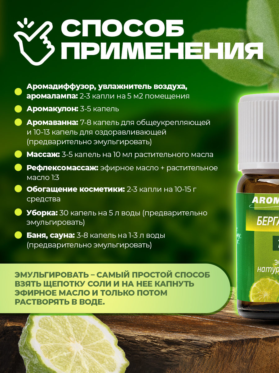Аромакулон: 3-5 капель масла или смеси масел налейте в аромакулон и носите на шее в течение дня.