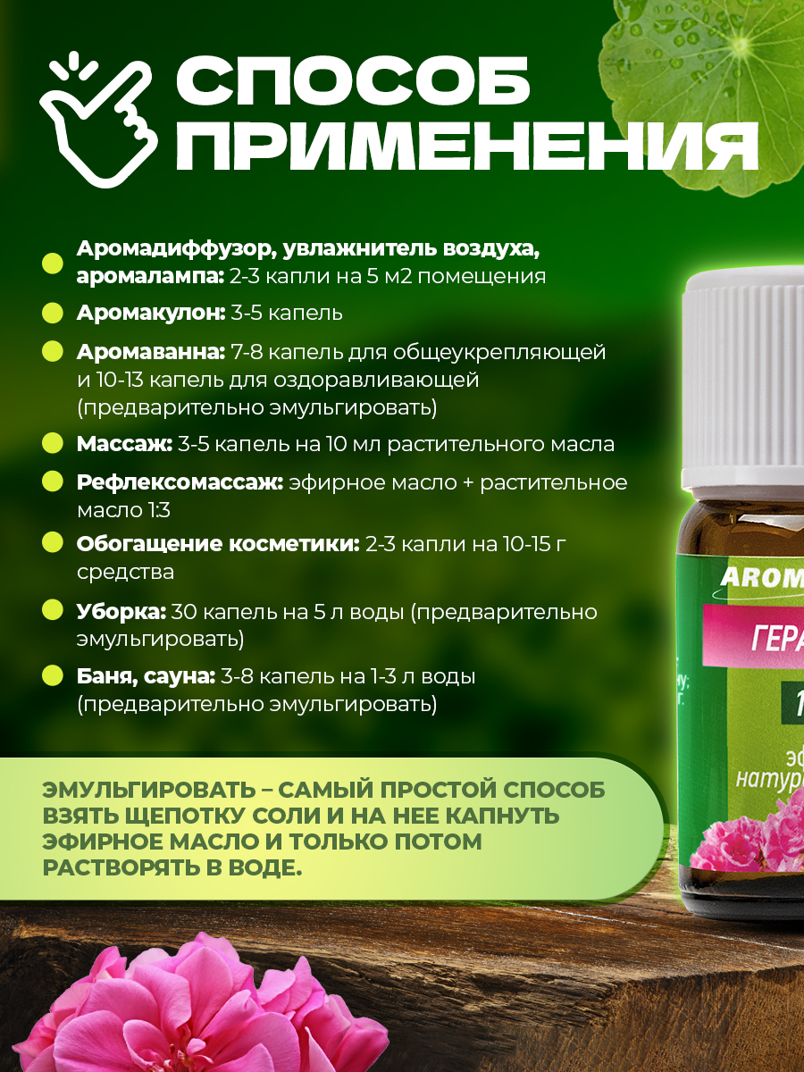 Аромакулон: 3-5 капель масла или смеси масел налейте в аромакулон и носите на шее в течение дня.
