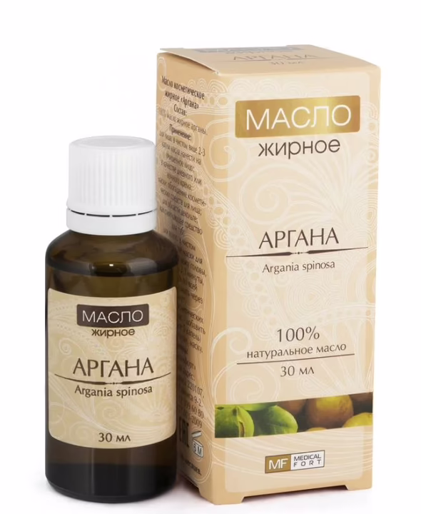 Масло арганы называют жидким марокканским золотом. Прекрасно увлажняет и насыщает кожу необходимыми питательными веществами. Действенное средство в борьбе с процессами старения кожи, способствует ее обновлению и регенерации. Подходит для ухода за тонкой и чувствительной кожей век. Ускоряет естественный рост волос, останавливает их выпадение. При регулярном применении помогает восстановить цвет и здоровый блеск волосам.