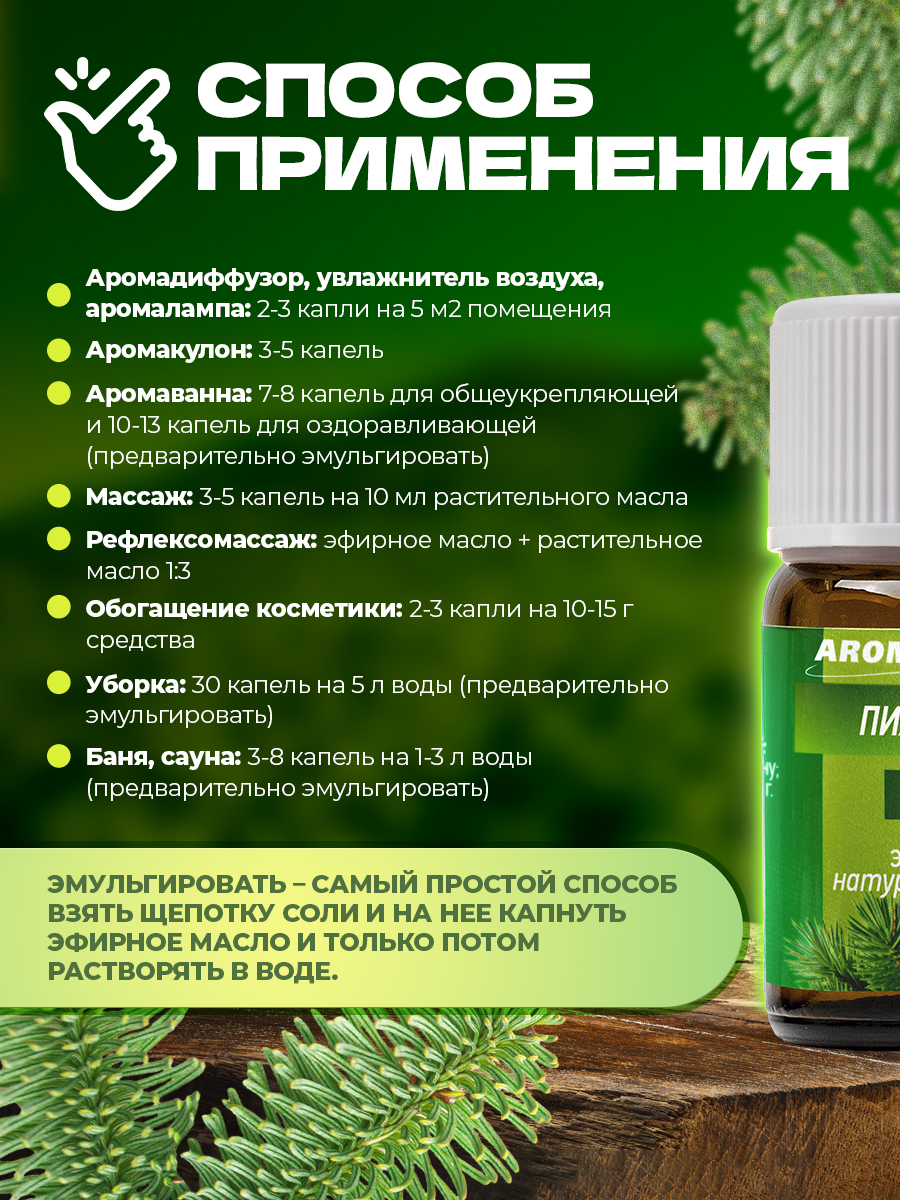 Аромакулон: 3-5 капель масла или смеси масел налейте в аромакулон и носите на шее в течение дня.