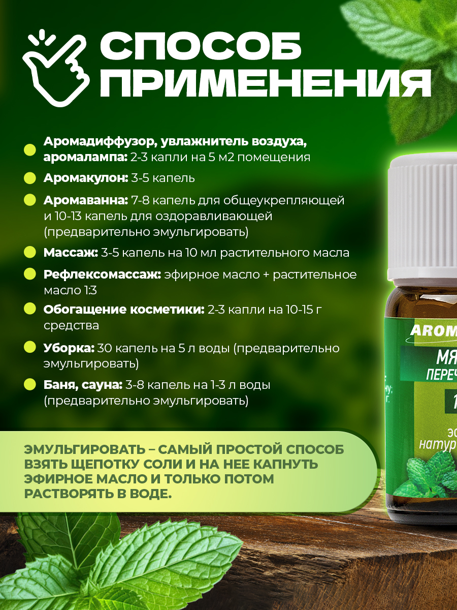 Широко известно, что масло перечной мяты положительно воздействует на биоэнергетику человека. Оно способно улучшить взаимопонимание между родными и близкими людьми, помогает устранить напряжение в отношениях, успокаивает и настраивает на позитивное восприятие окружающего мира. Масло рекомендуют для восстановления внутренних сил, релаксации и улучшения настроения.