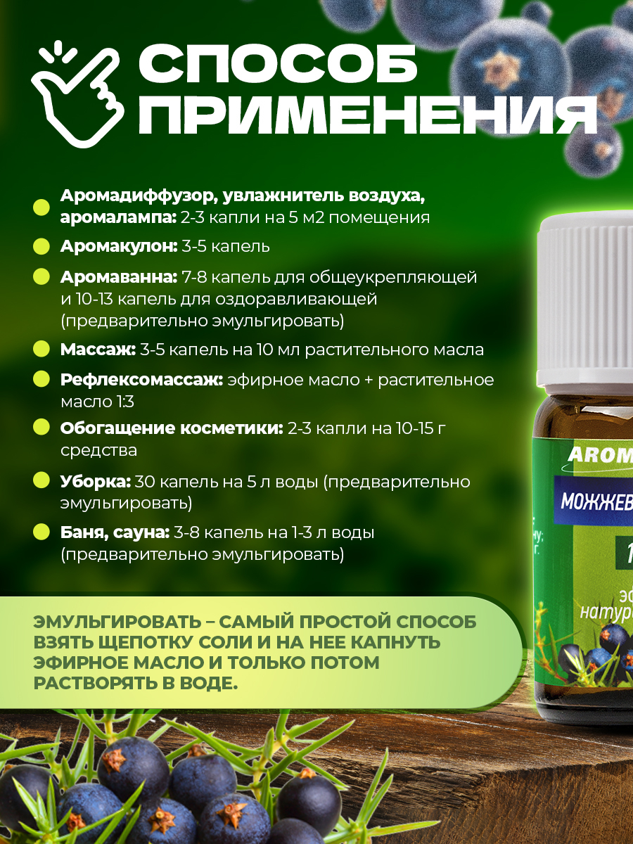 Недавно узнала, что фитанциды можжевельника действуют в радиусе 15 метров вокруг растения. Использую в ванной, для сауны и еще в туалете в качестве натурального ароматизатора.