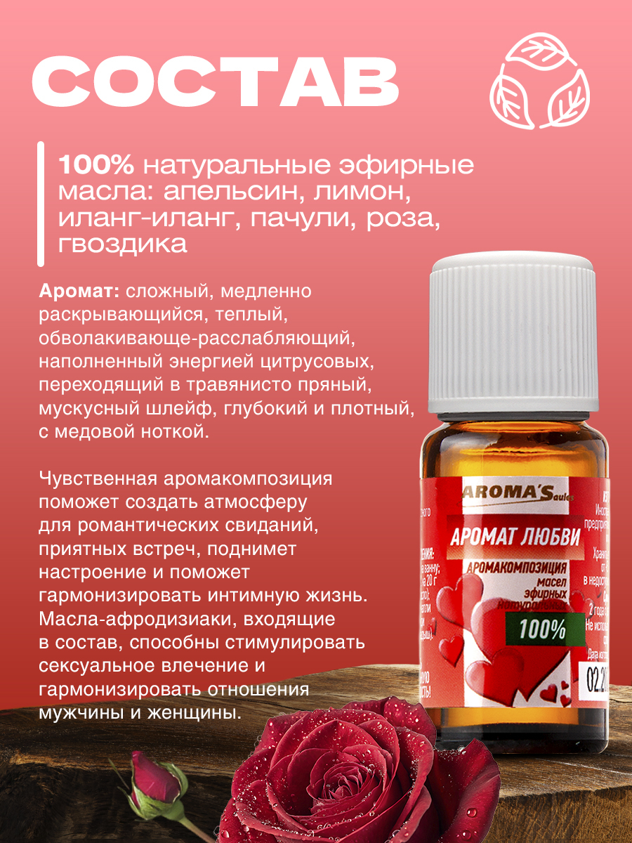 Аромакомпозиция натуральных эфирных масел "Аромат любви" (10 мл)
