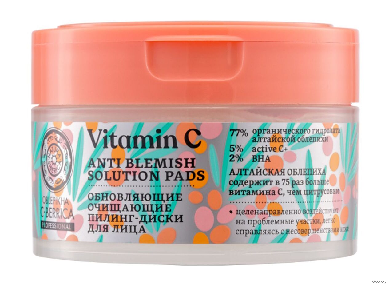Пилинг-диски помогут легко справиться со всеми несовершенствами кожи! Глубоко очищают кожу от загрязнений, уменьшают воспаления, сужают расширенные поры, предотвращая образование воспалений и жирного блеска. Активная форма витамина С "Active C+" подходит даже для чувствительной кожи, отлично воздействуя на верхние слои, защищая от УФ-излучения. Органический гидролат алтайской облепихи благодаря высокому содержанию витамина С, ускоряет процессы восстановления, способствует удержанию влаги в коже, возвращая ей упругость и эластичность. BHA-кислоты оказывают противовоспалительное действие, нормализуют pH кожи и работу сальных желез, сужая поры, уменьшая черные точки и осветляя пост-акне.
