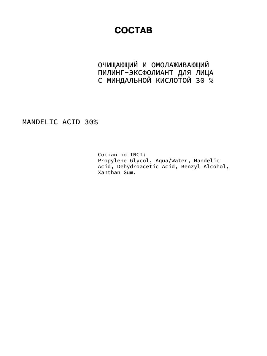 Propylene Glycol, Aqua/Water, Mandelic Acid, Dehydroacetic Acid, Benzyl Alcohol, Xanthan Gum.Мы используем файлы cookie для обеспечения удобства работы с сайтом и его контакта с пользователем.
