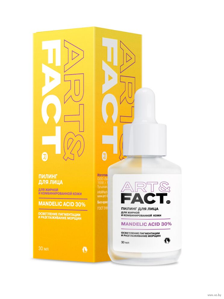 Относительно других фруктовых кислот миндальная кислота намного мягче и абсолютно безвредна даже для чувствительной и тонкой кожи. Пилинг выравнивает микрорельеф кожи, сужает поры, очищает от чёрных точек. Помогает в терапии акне I-IV степени. Также стимулирует синтез коллагена и разглаживает мелкие морщинки, а глубокие делает менее заметными.