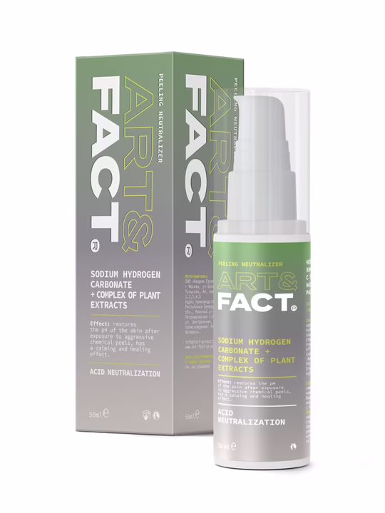 Нейтрализатор восстанавливает рН кожи после воздействия агрессивных химических пилингов. Гидрокарбонат натрия нейтрализует кислоты и снижает степень их проникновения в глубокие слои кожи при контакте с водой. Экстракт календулы и ромашки добавляет успокаивающее и заживляющее действие.