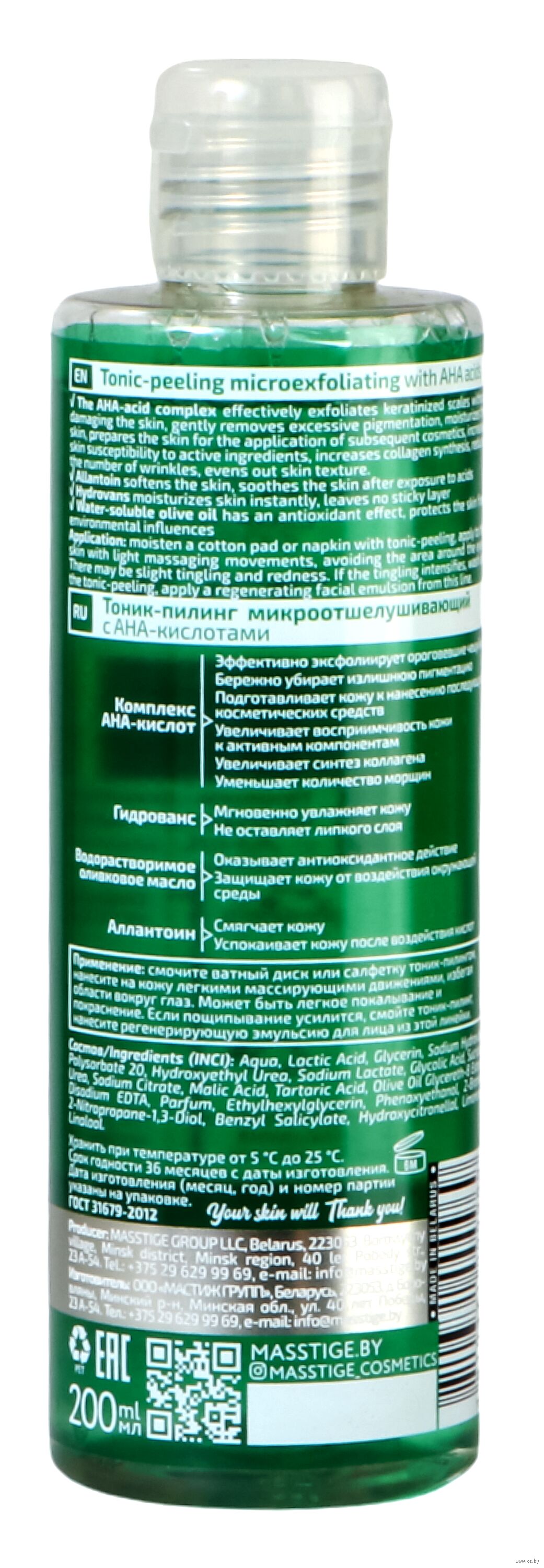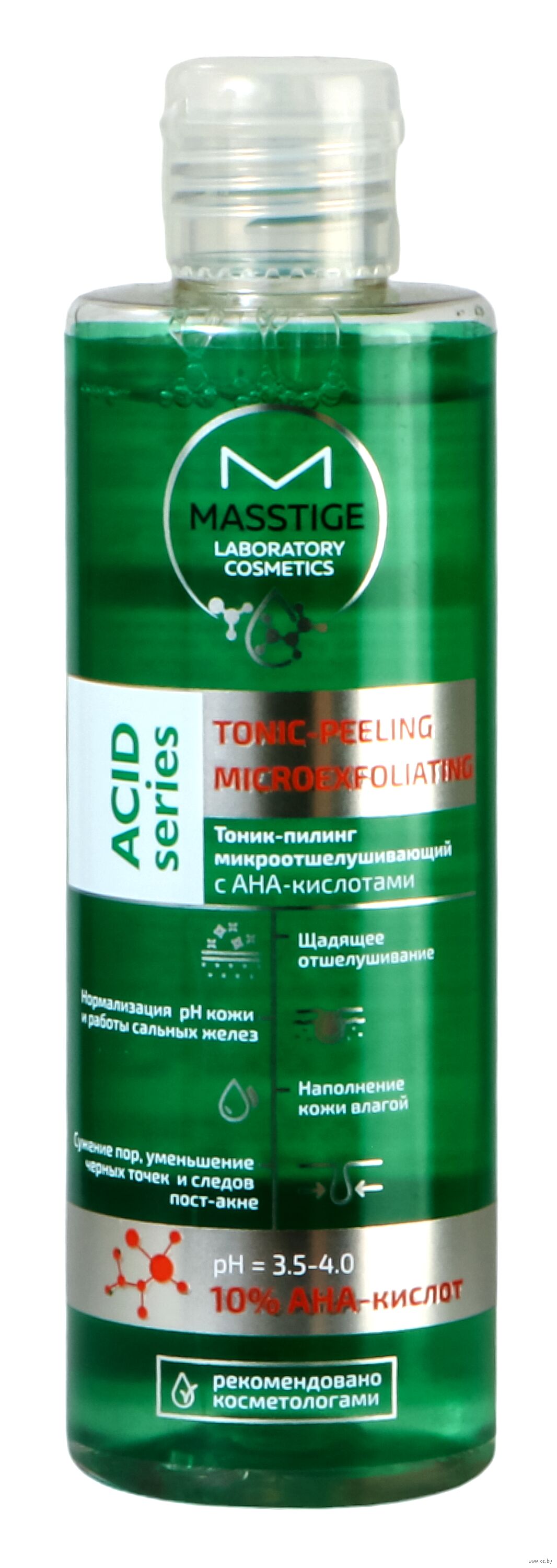 Тоник-пилинг Masstige Acid Series микроотшелущивающий на основе AHA-кислот мягко и эффективно отшелушивает омертвевшие клетки, придает коже мягкость и гладкость.