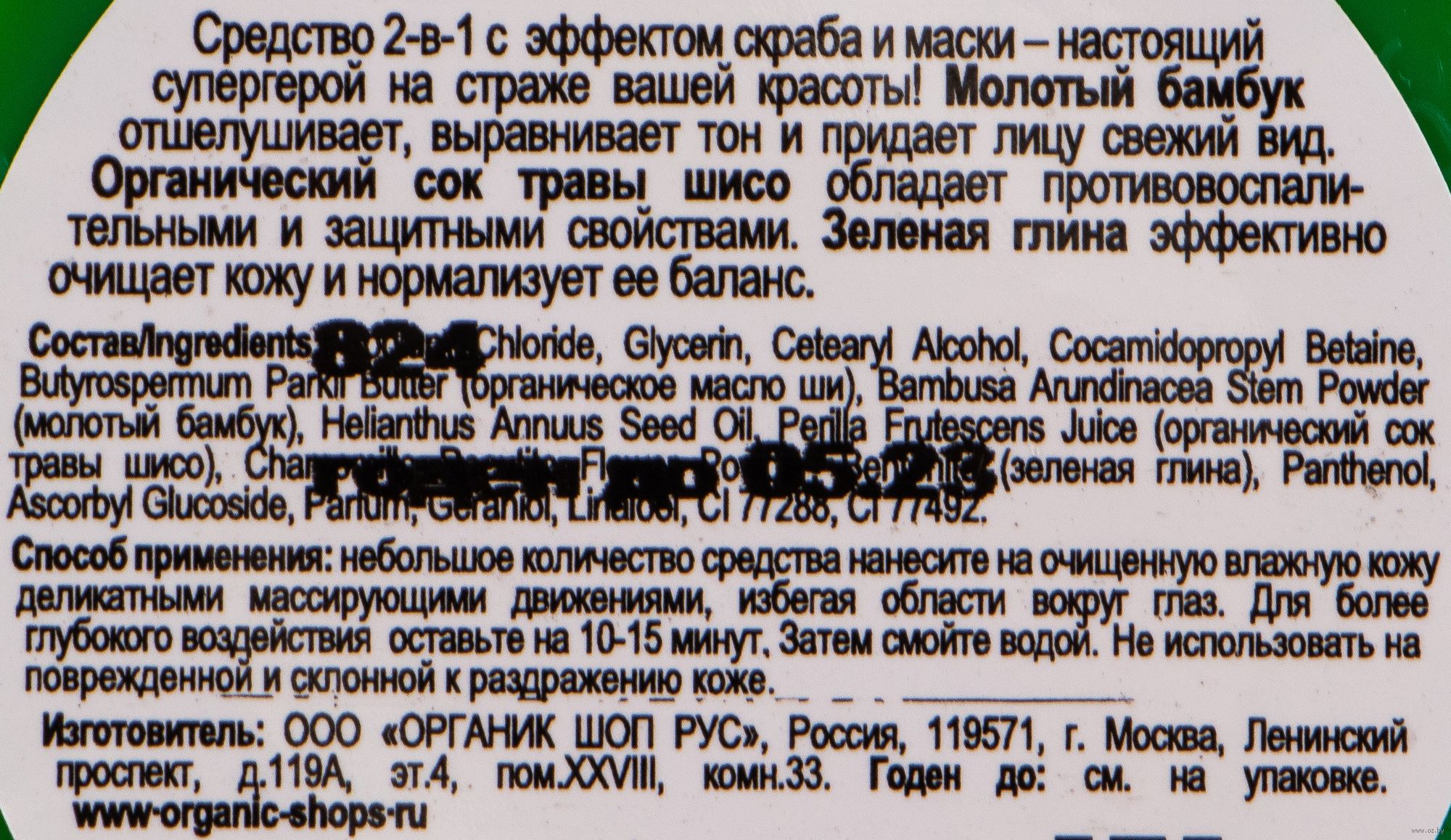 Средство 2-в-1 с эффектом скраба и маски – настоящий супергерой на страже вашей красоты! Молотый бамбук отшелушивает, выравнивает тон и придает лицу свежий вид. Органический сок травы шисо обладает противовоспалительными и защитными свойствами. Зеленая глина эффективно очищает кожу и нормализует ее баланс.