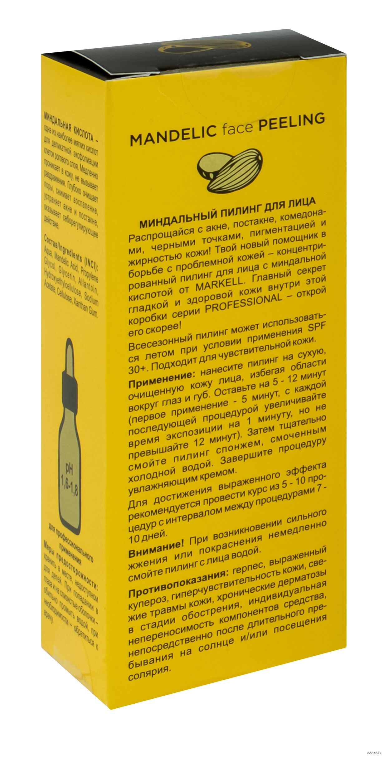 Нанесите пилинг на сухую, очищенную кожу лица, избегая области вокруг глаз и губ. Оставьте на 5-12 минут (первое применение - 5 минут, с каждой последующей процедурой увеличивайте время экспозиции на 1 минуту, но не превышайте 12 минут). Затем тщательно смойте пилинг спонжем, смоченным холодной водой. Завершите процедуру увлажняющим кремом.Состав