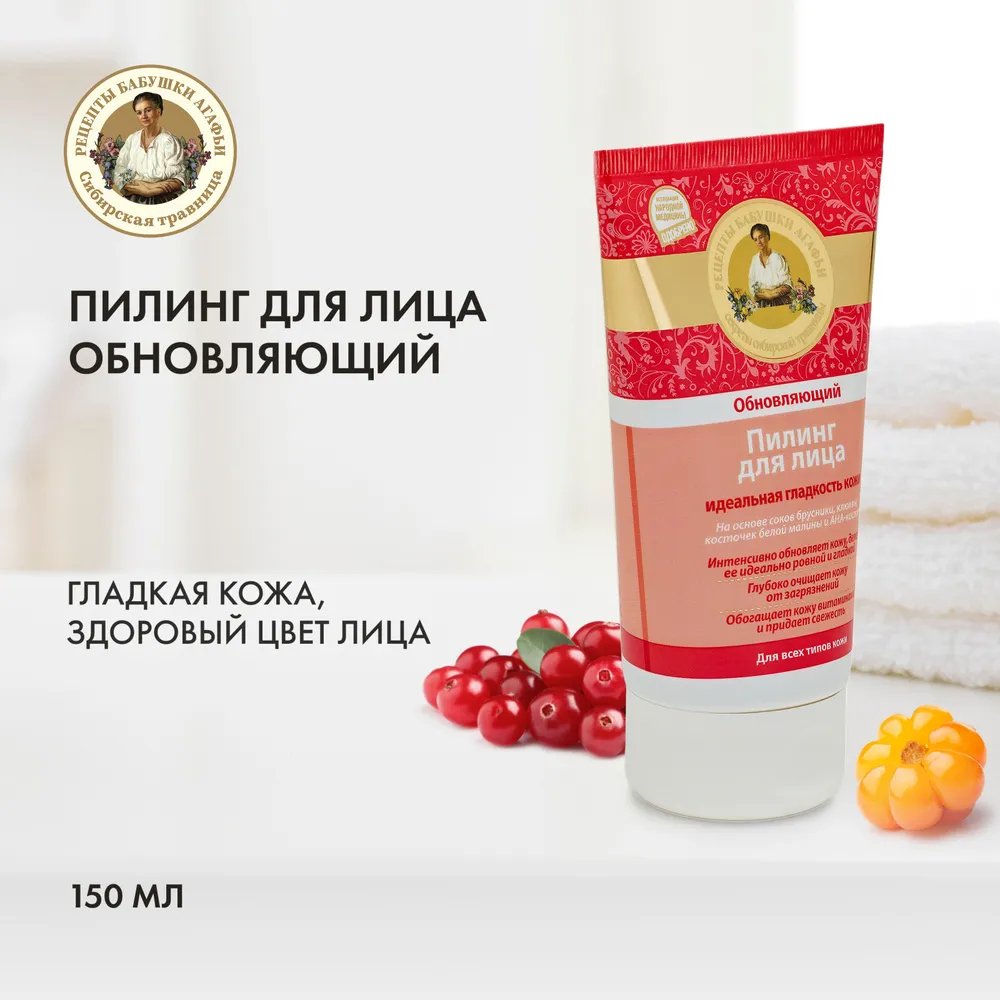 Пилинг для лица на основе соков диких северных ягод, созданный по рецептам сибирской травницы Агафьи, обновляет кожу, делая ее идеально ровной и гладкой. Косточки белой малины и AHA-кислоты удаляют ороговевшие клетки и глубоко очищают кожу от загрязнений. Сок брусники, входящий в состав, богат органическими кислотами и микроэлементами, глубоко питает кожу и придает ей мягкость. Сок клюквы обогащает кожу витаминами, повышает тонус и выравнивает цвет лица.
