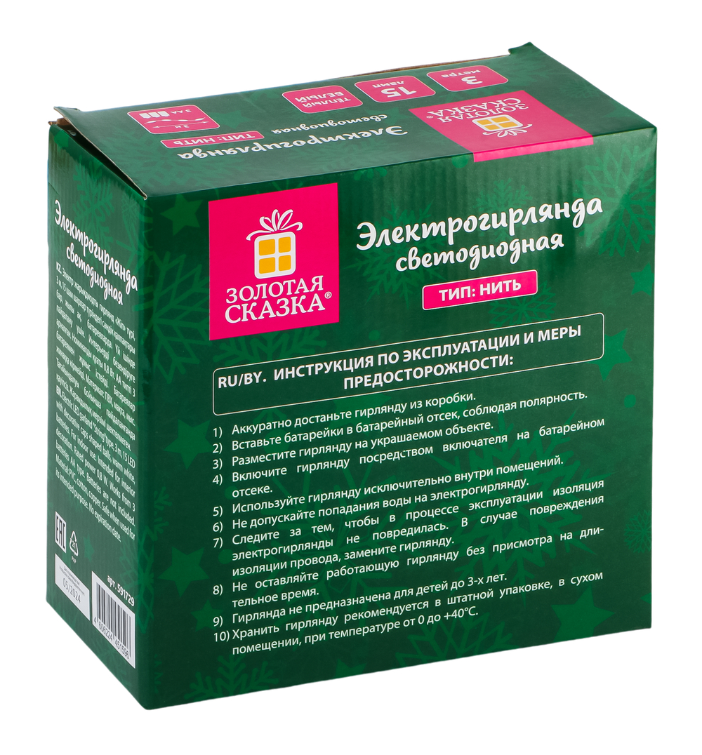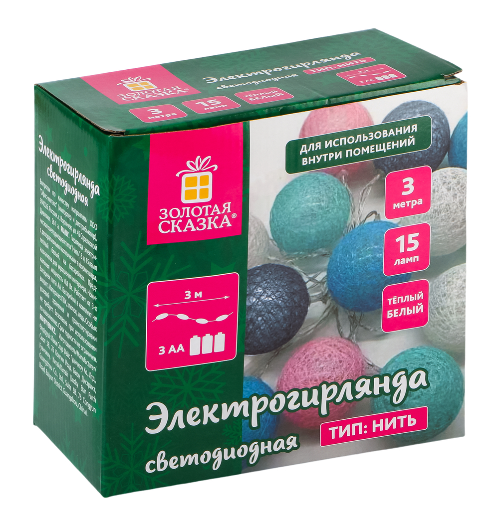 Гирлянда работает от 3 батареек типа AA. Батарейки не входят в комплект!