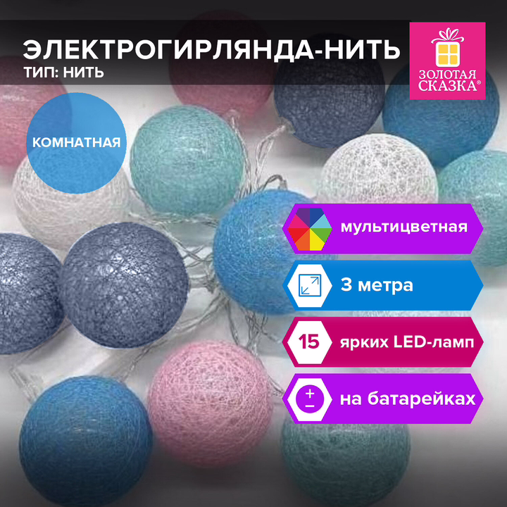 Гирлянда "Cotton Balls" (15 лампочек; мультицветная)