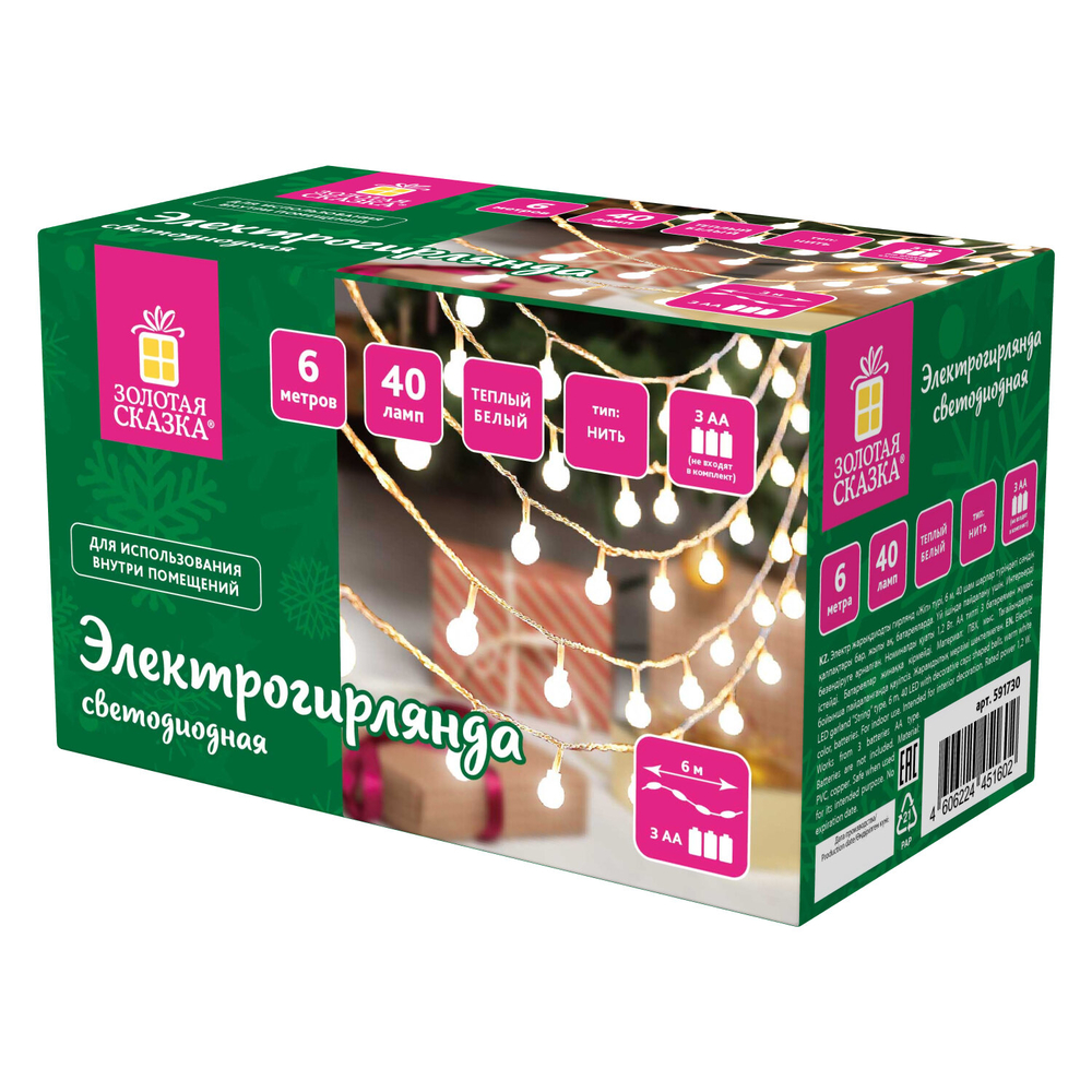 Гирлянда "Шарики" (40 лампочек; тёплый белый)
