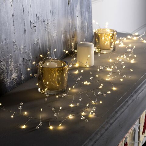 Это тонкий, почти невидимый провод с миниатюрными светодиодными лампочками, которые создают эффект мерцающих капель росы. Лампочки расположены на гибкой проволоке, что позволяет свободно формировать различные формы и украшать ими любые поверхности: окна, мебель, растения, элементы декора.