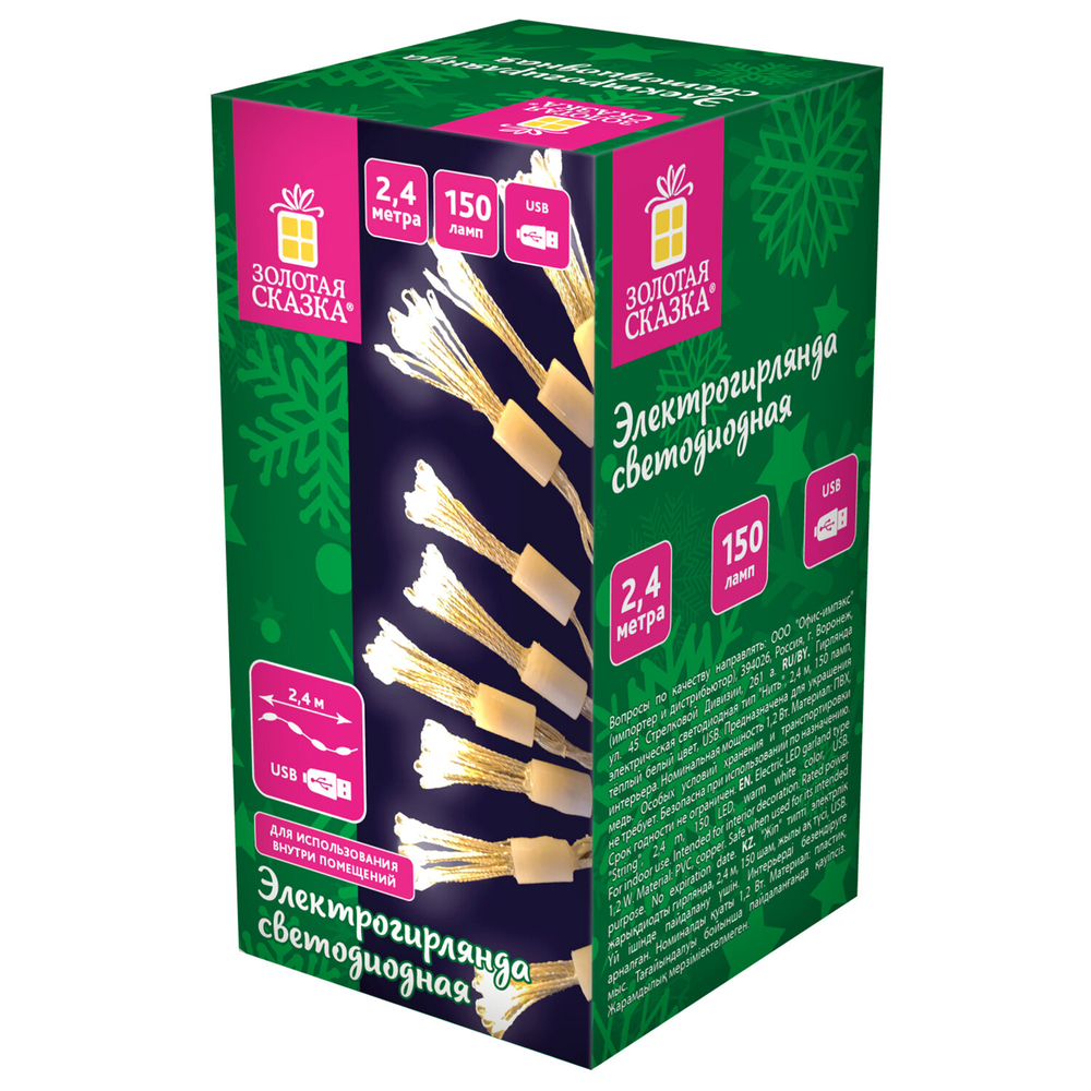Цвет свечения гирлянды – теплый белый. Гирлянда работает от USB-разъема.
