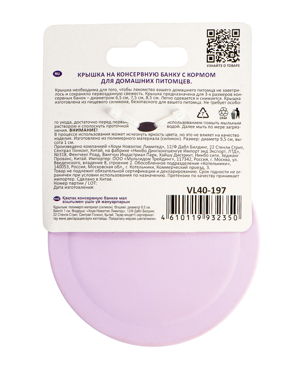 Крышка предназначена для 3 размеров консервных банок – диаметром 6,5 см, 7,5 см, 8,5 см. Легко надевается и снимается.