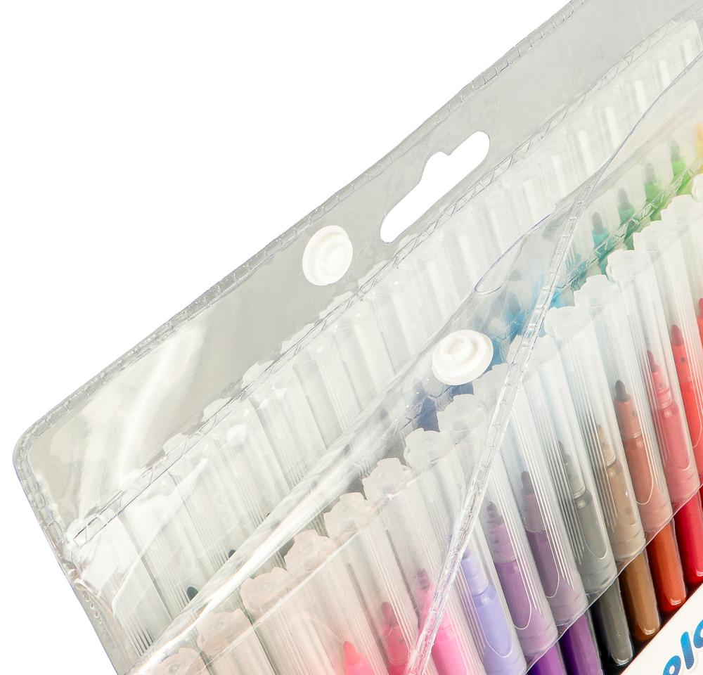 Фломастеры изготовлены на водной основе, поэтому они безопасны и смываются с большинства материалов и кожи. Прозрачный колпачок имеет специальные прорези для вентиляции, которые способствуют прохождению воздуха при попадании в дыхательные пути малыша.